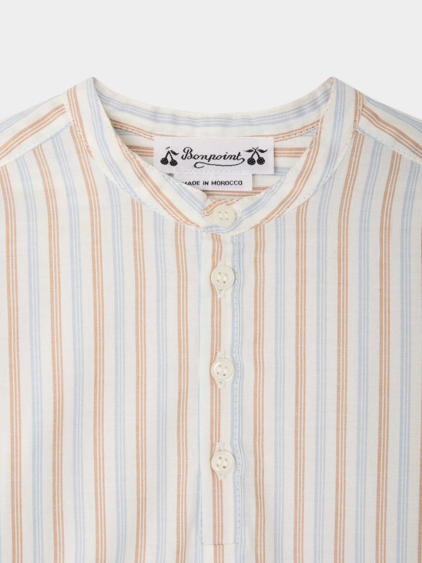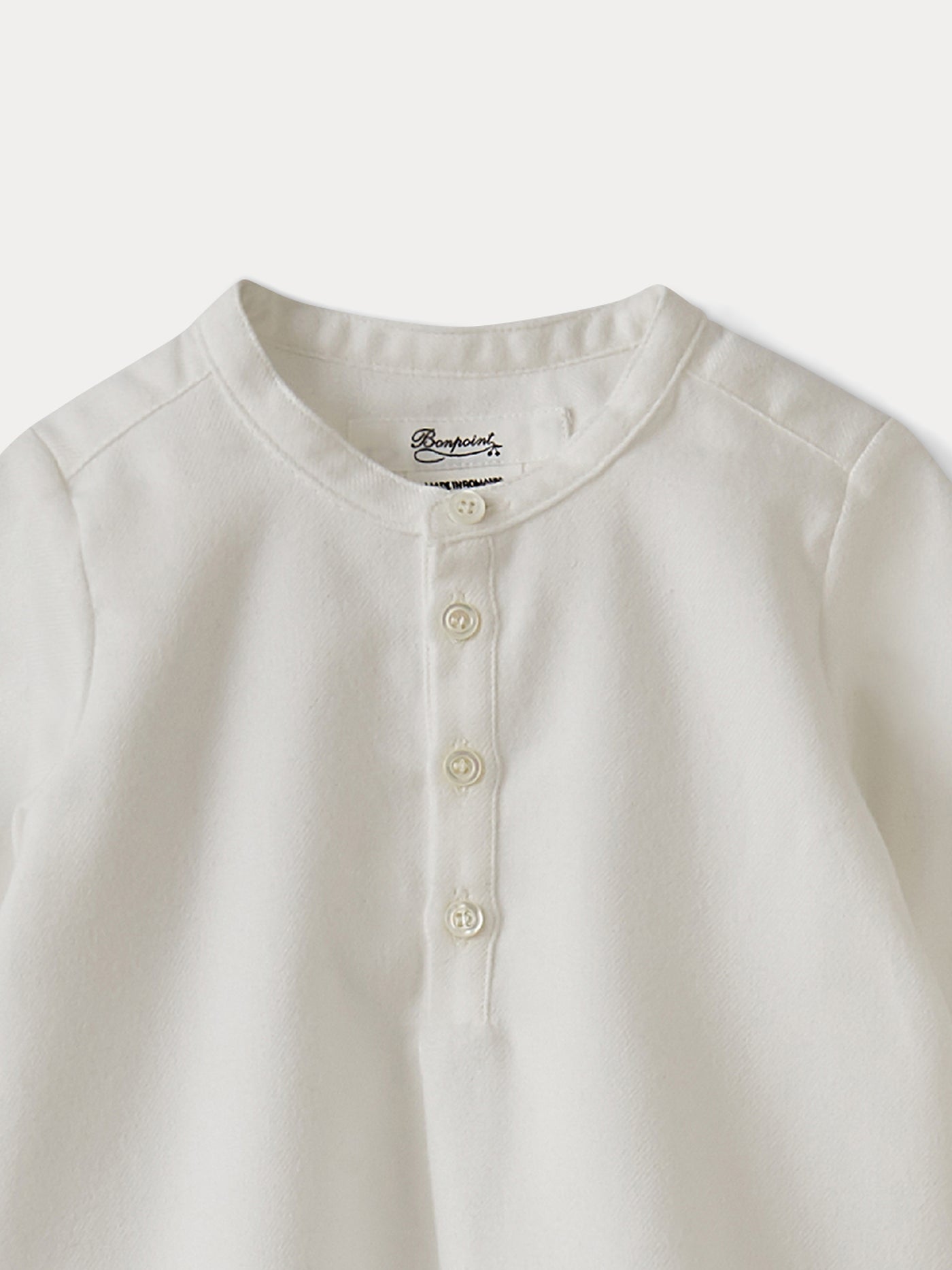 Leveraging distinct craftsmanship, Bonpoint creates extraordinary attire for the youngest ones. Essential to every little boy's wardrobe, our baby shirts and t-shirts showcase elegant lines and precise cuts. They are created from carefully chosen, high-grade fabrics. Each garment is a testament to detailed workmanship, marrying comfort and quality.