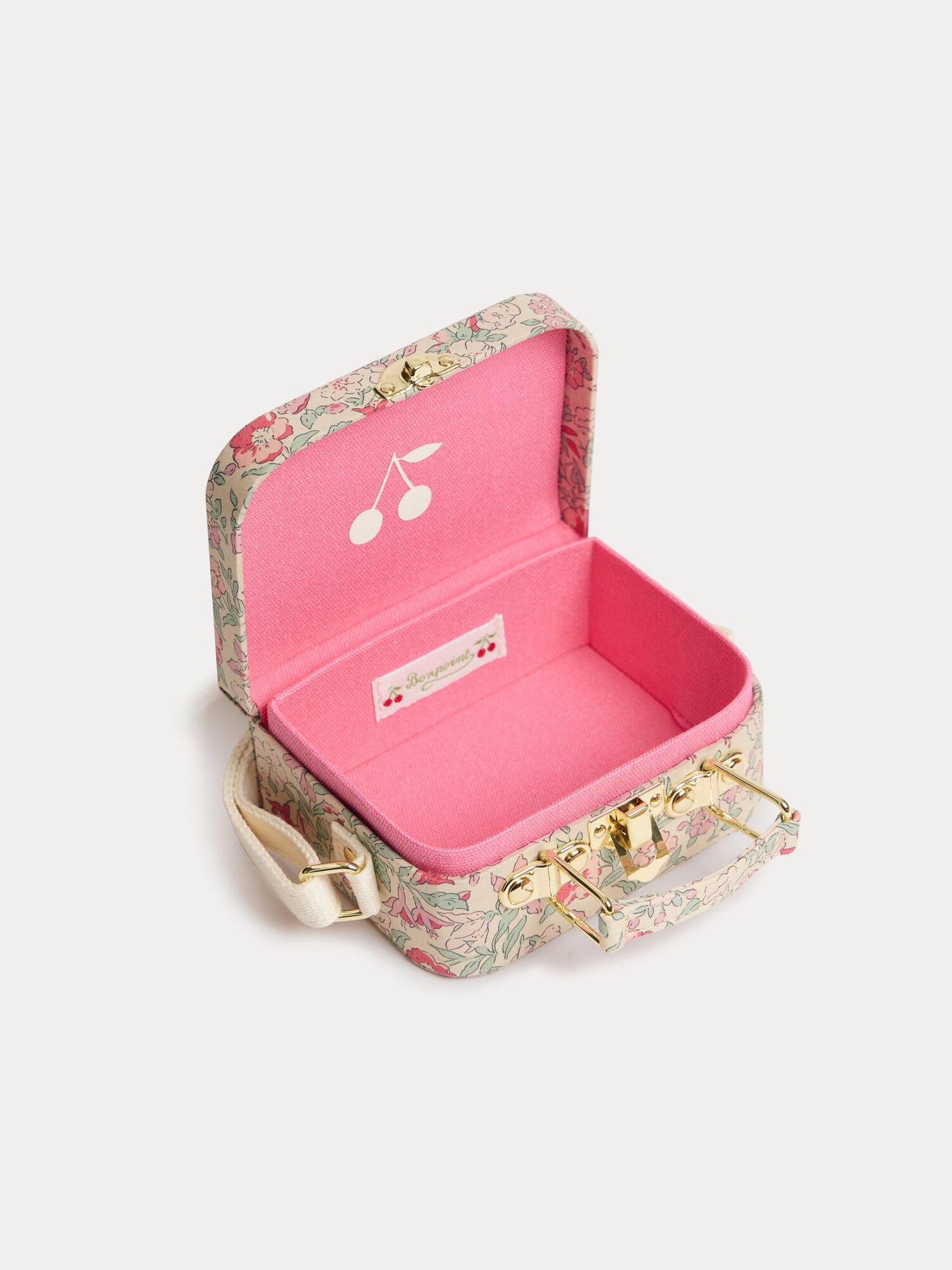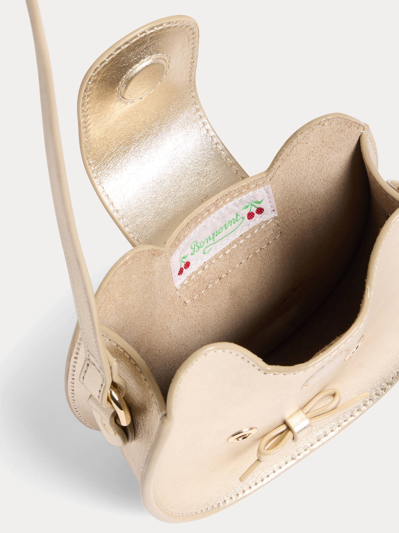 As with all other pieces in our children's collection, our bags feature high-end finishes. Subtle details like tone-on-tone stitching, contrasting charms, pearls or raffia, embroidered or overstitched motifs, a golden Bonpoint logo in metal or perforated cherries, a fusion of faux fur and iridescent leather, add an extra touch of uniqueness and sophistication to our bags. These delicate elements not only enhance our bags but also elevate a young girl's outfit.