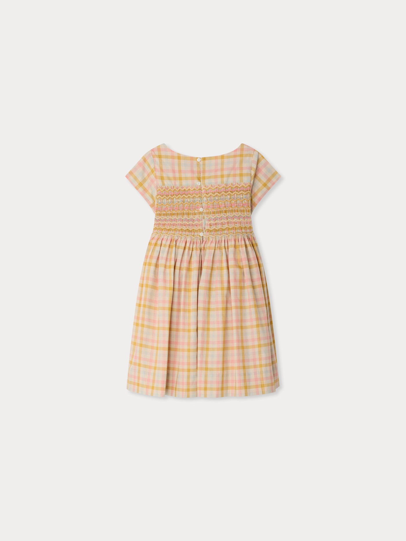 Every dress we create is a testament to a unique standard of quality and craftsmanship, employing only the most noble and elegant materials. Be it our girls' dresses in cotton, silk, wool, or linen, we meticulously select our fabrics to create refined and thoughtful collections. Our hand-embroidered smocked girls' dresses perfectly epitomize the savoir-faire of our House. These iconic dresses strike a perfect balance between comfort and elegance, providing a sensation of softness and lightness to the young girls who wear them...