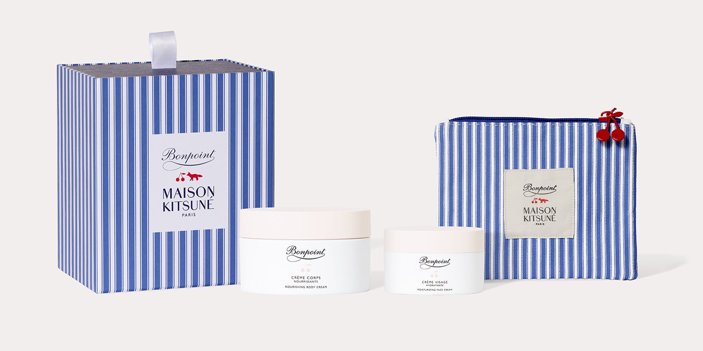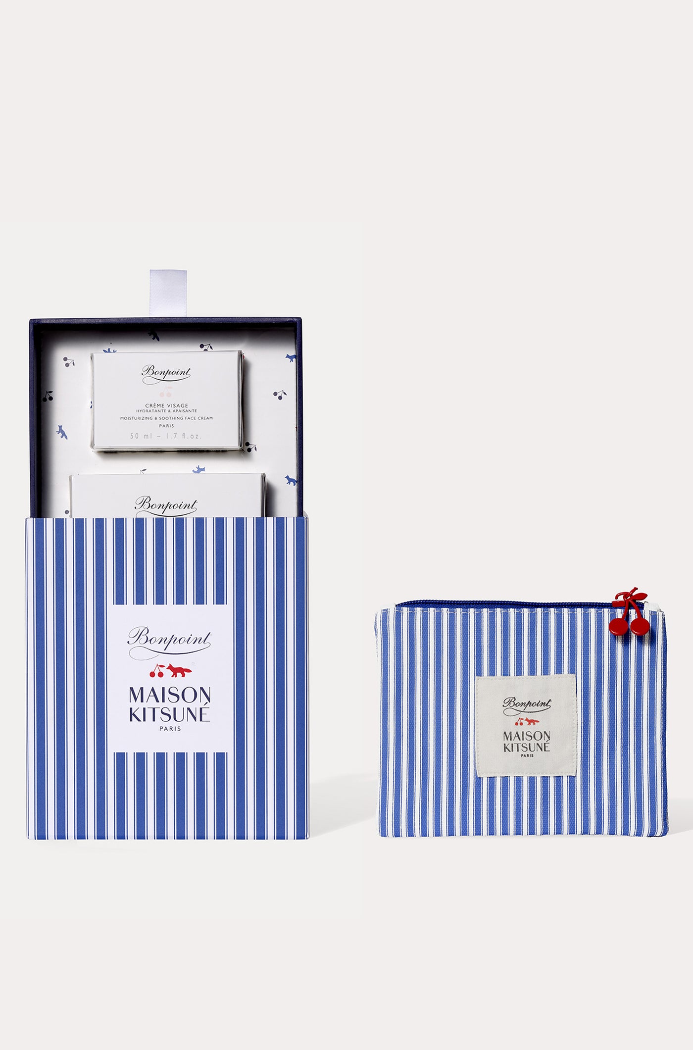 Bonpoint and Maison Kitsuné also unveil an exclusive set featuring two iconic Bonpoint Beauté skincare essentials: the body cream and the face cream. This limited edition comes in a unique, specially designed packaging.