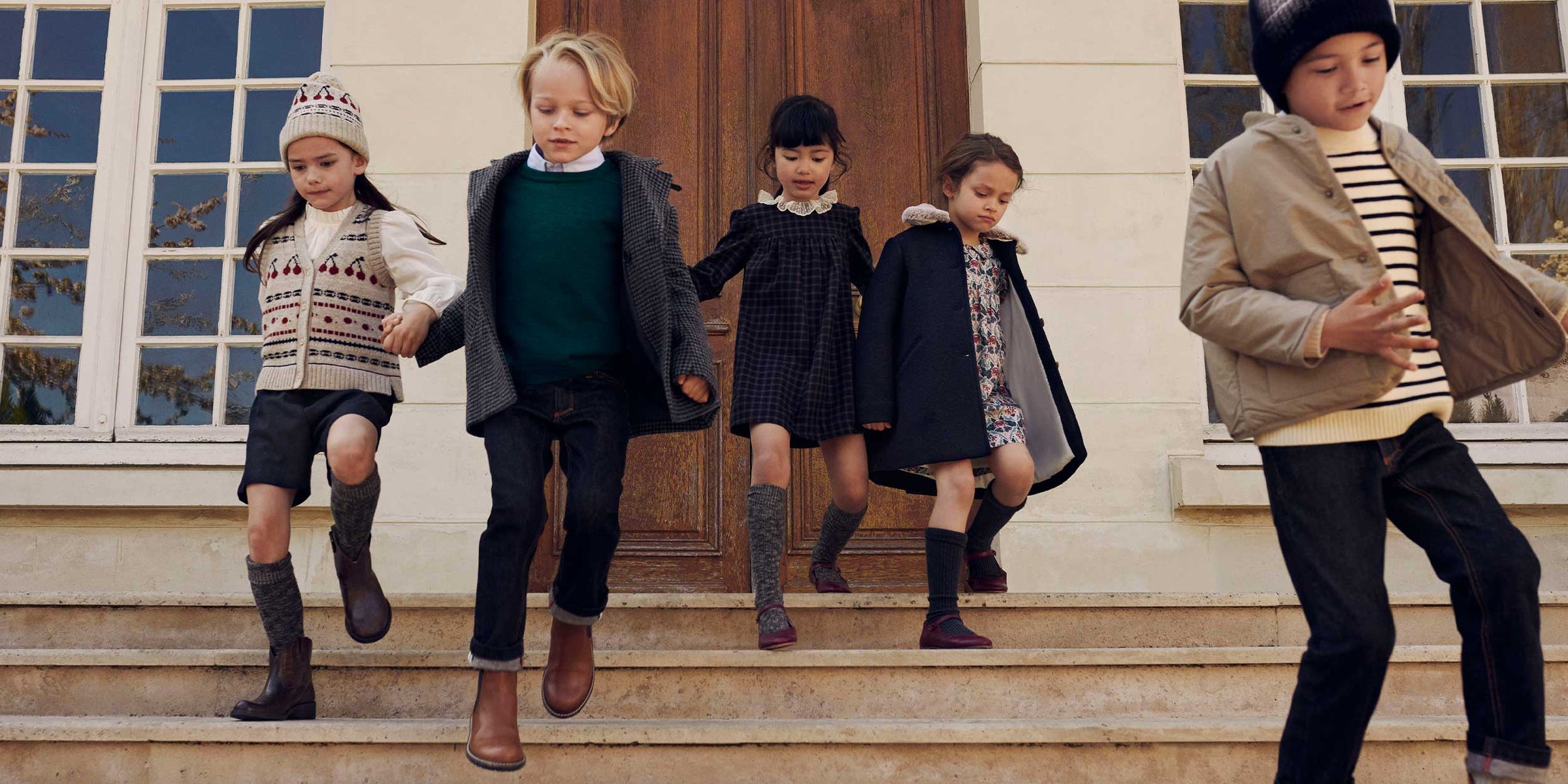 Whether you're strolling through a frosty woodland, sipping hot cocoa by a fireside, or venturing into the urban wilderness, the Fall/Winter Bonpoint collection offers a timeless invitation to embrace the great outdoors in style. It embodies the harmony of nature and fashion, ensuring that every outdoor escapade becomes an opportunity to showcase elegance, warmth, and a spirit of exploration.